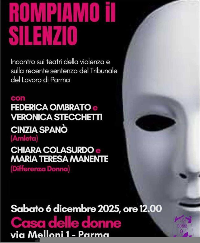 Sabato 6 dicembre alle ore 12.00 alla Casa delle donne, in via Melloni 1, parleremo dei teatri della violenza e della storica sentenza del tribunale del lavoro di Parma, che ha condannato il più importante teatro di prosa della città e uno dei suoi registi di punta per molestie e violenze sessuali.