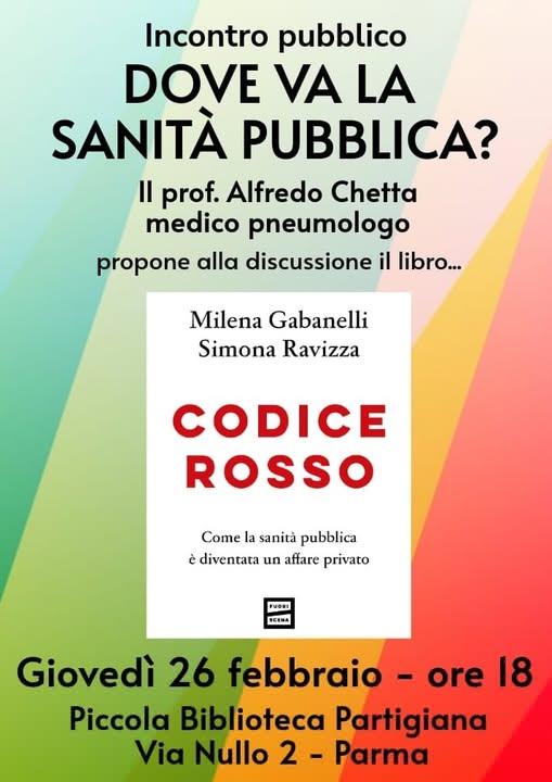 Nel suo programma di presentazione di libri che si ritengono utili al confronto, la Piccola Biblioteca Partigiana organizza un incontro con il Prof. Alfredo Chetta sul libro di Milena Gabanelli e Simona Ravizza, Codice rosso, dedicato alla sanità pubblica.