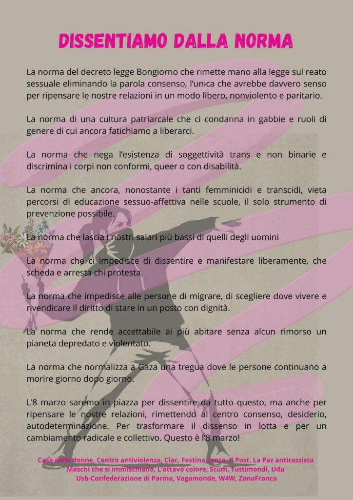 Quest’anno scendiamo in piazza a Parma per gridare il nostro dissenso.